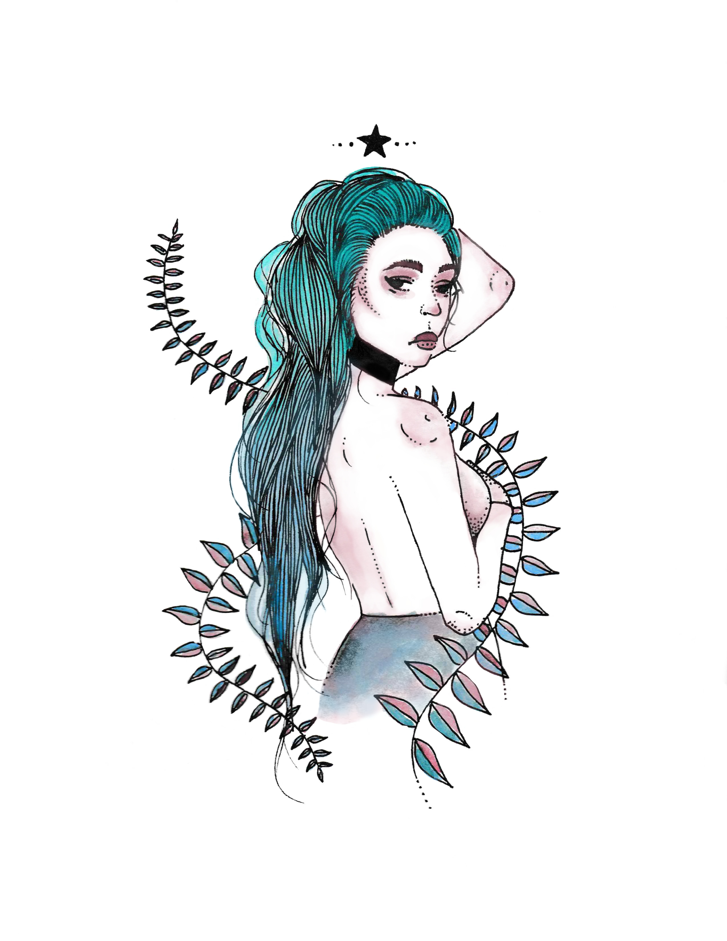 This is a watercolor and ink, 8 1/2x11 fine art print of One Star.